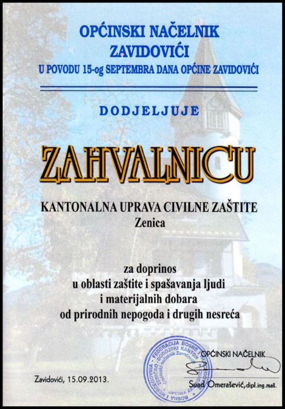 ZENIČKO-DOBOJSKI KANTON KANTONALNA UPRAVA CIVILNE ZAŠTITE OBRAZAC BR. 3 IZVJEŠTAJ...