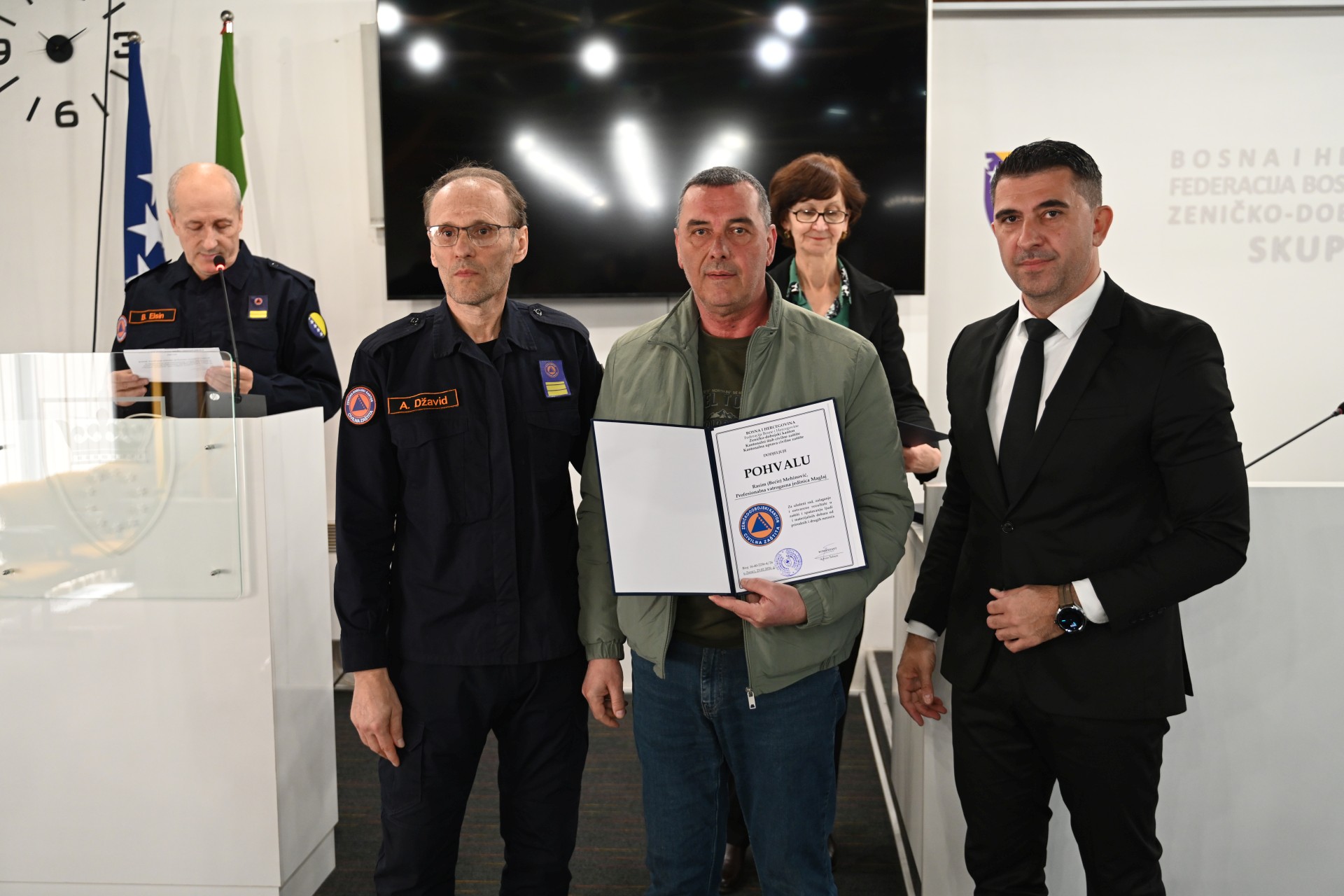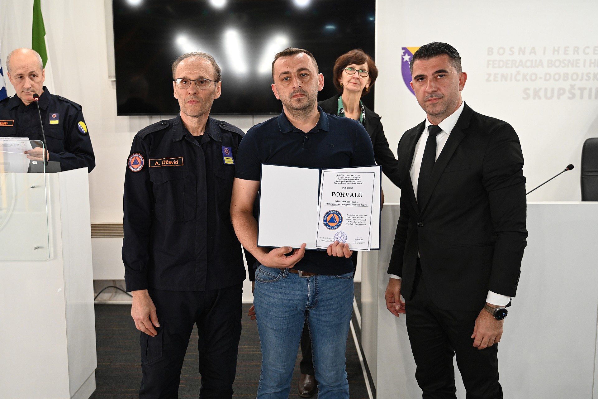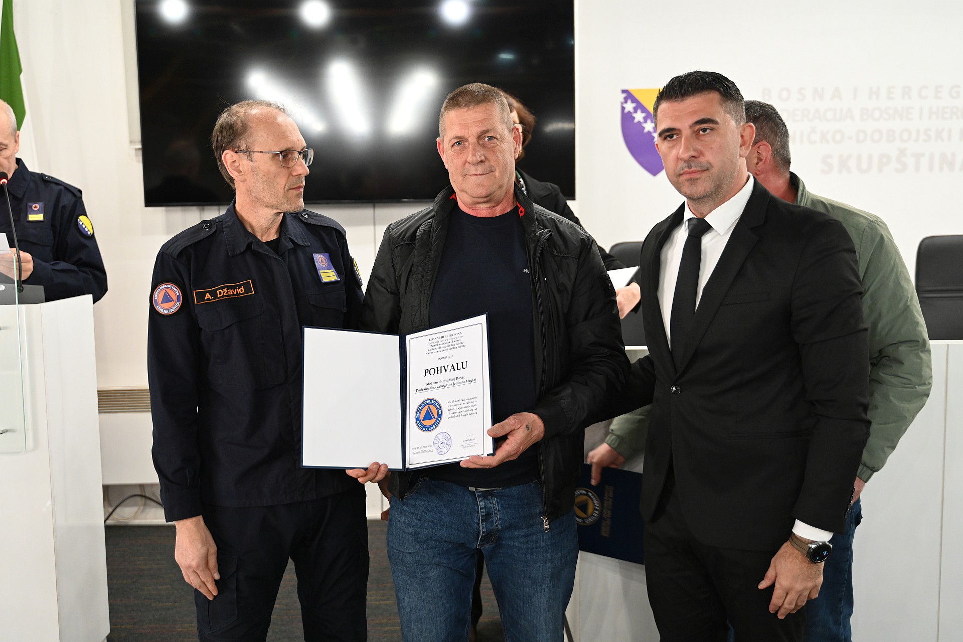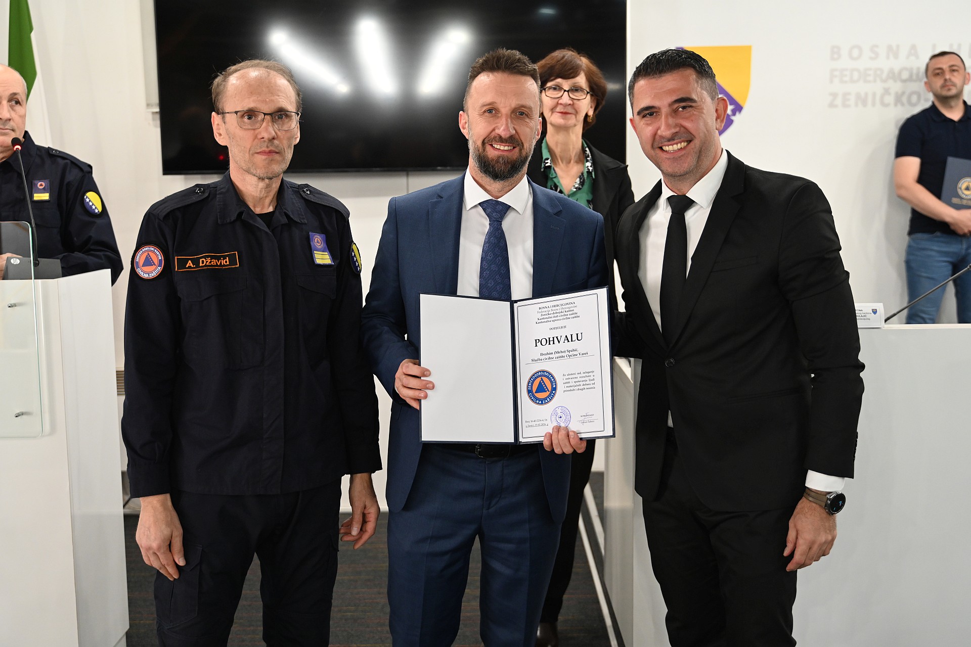 Komandant KŠCZ-a i ministar za prostorno uređenje, promet i komunikacije i zaštitu okoliša Adnan Šabani te načelnik KŠCZ-a i direktor Kantonalne uprave civilne zaštite Džavid Aličić, uručili su "Pisanu pohvalu" vatrogascima Rasimu Mehinoviću i Mehemedu Ruviću, pripadnicima Profesionalne vatrogasne jedinice Maglaj, Ibrahimu Spahiću iz Službe civilne zaštite Općine Vareš te posthumno Niki Tomasu, pripadniku Profesionalne vatrogasne jedinice Žepče.